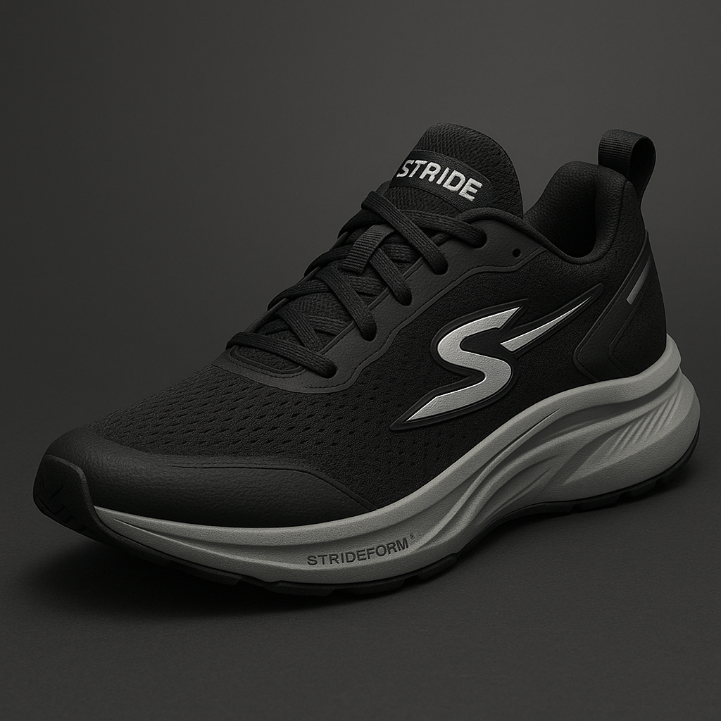 Stride Apex Noir is the ultimate fusion of performance and minimalism. Dressed in an all-black design with subtle grey accents, this sneaker brings a bold edge to your everyday style. Its lightweight, breathable mesh upper ensures all-day comfort, while the responsive sole offers superior grip and bounce. Whether you’re powering through your workouts or strolling through the city, the Apex Noir delivers function without compromising on style. With clean branding details and a streamlined silhouette, it’s a go-to for those who move with purpose and style.
