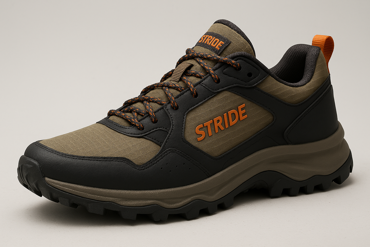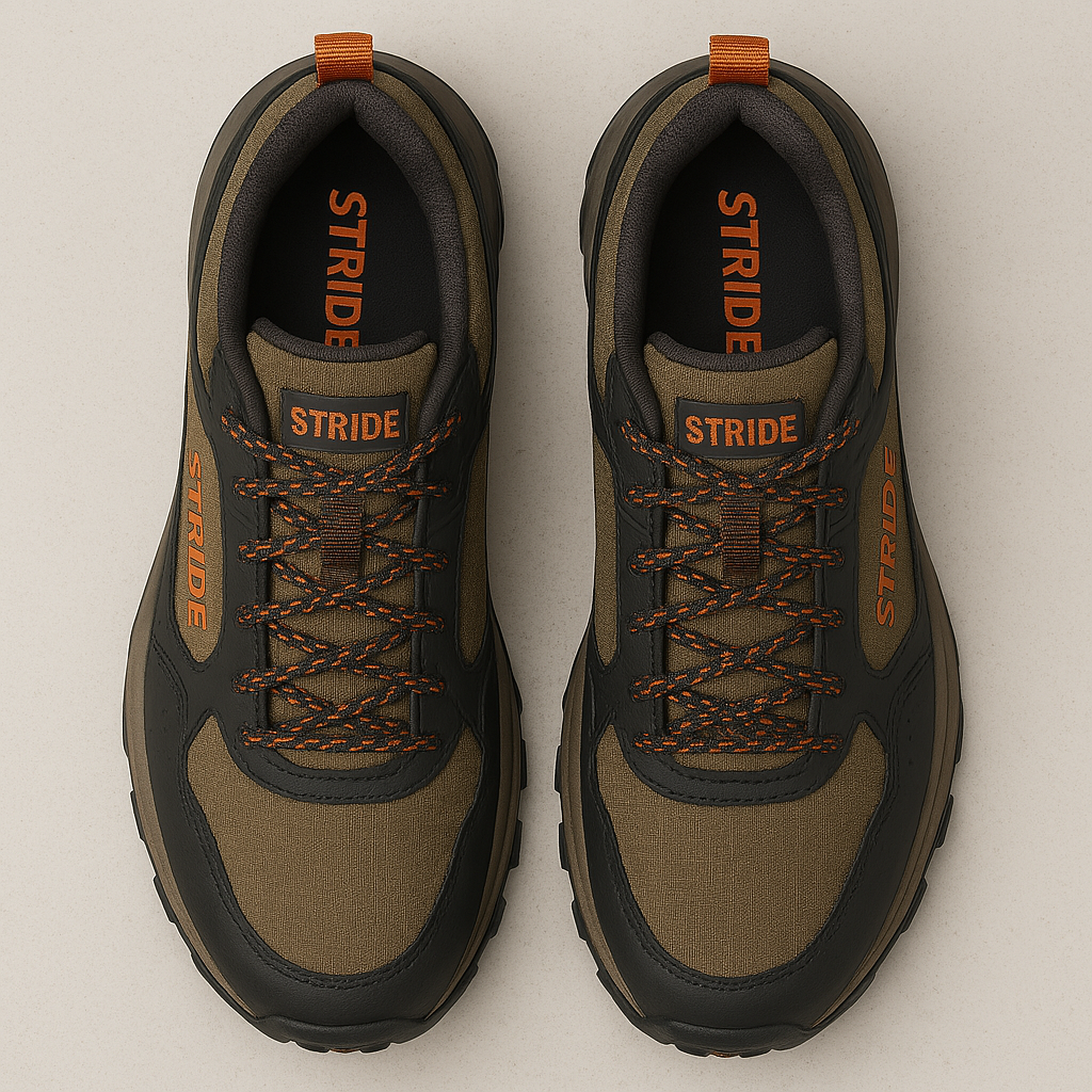 Conquer any trail with the Stride Trek Terra – a perfect fusion of endurance, protection, and performance. Designed for the bold, these trail-ready shoes feature a reinforced build with abrasion-resistant panels, cushioned interiors, and aggressive outsoles for maximum traction. The earthy olive-brown and black colorway, accented with striking orange STRIDE branding and matching rope laces, delivers both rugged style and functional form.